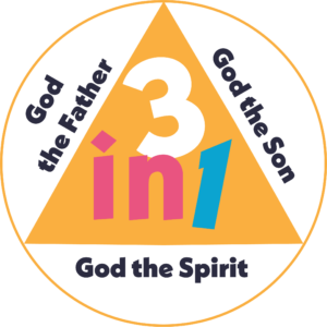 Explain to your child that the Bible teaches that God is three Persons, but He is one God. This concept is called the “Trinity.” That’s tri- (which means three) and unity (that means one). Put them together and we get Trinity.